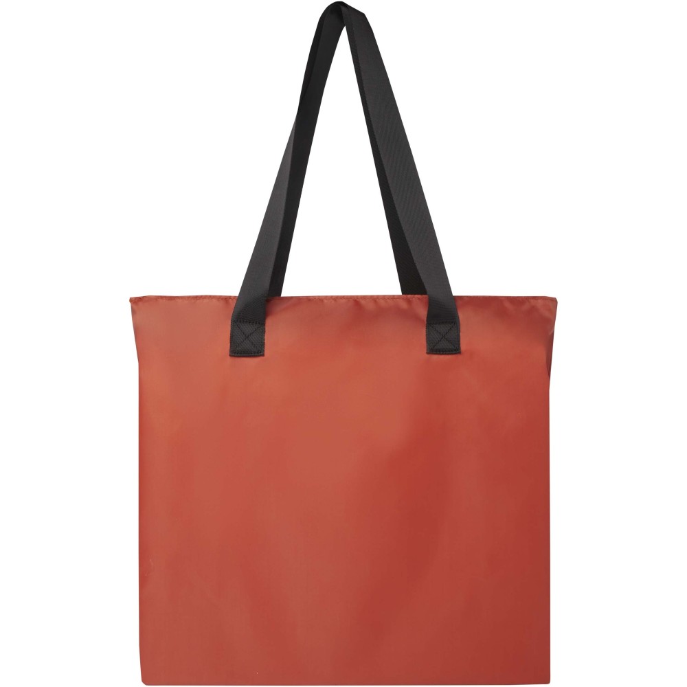 Ez a könnyű, mégis tartós bevásárlótáska a kényelem és praktikusság jegyében készült. Könnyedén a kompakt tasakba hajtható, amelyen hurok található a kényelmes hordozás érdekében - tökéletes rohanós napokra, spontán bevásárlásokhoz vagy tartalék táskaként. Tágas cipzáras főrekesszel, cipzáras elülső zsebbel és két hosszú, sima szövött anyagból készült fogantyúval rendelkezik. PVC-mentes újrahasznosított poliészterből készült. Űrtartalma: 16 liter.