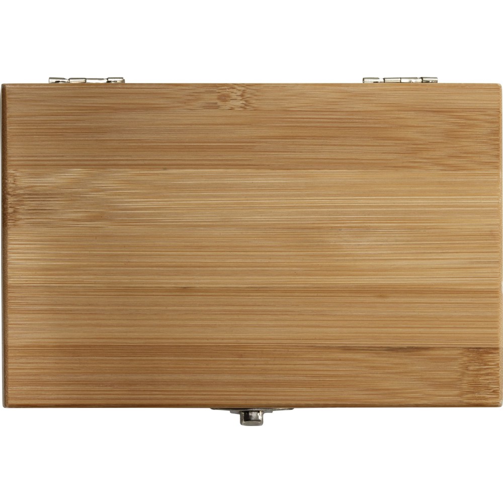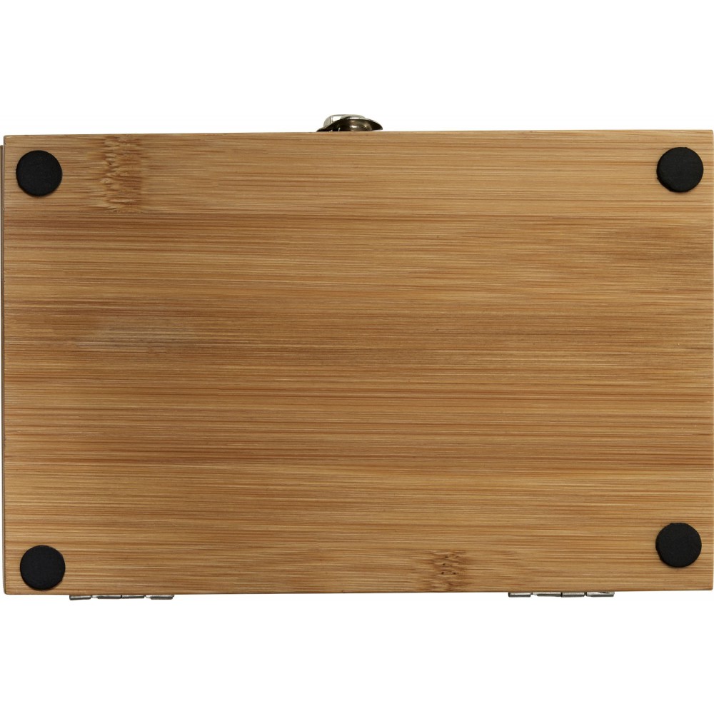 Tartalma: pincérbicska, üvegdugó, cseppfogó. Csomagolása bambusz díszdoboz. Bambusz és BPA-mentes műanyag.