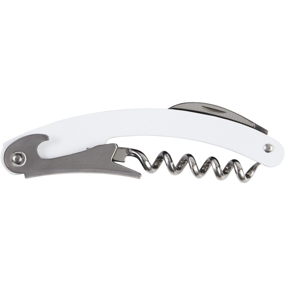 Rozsdamentes acél pincérbicska, fóliavágó, üvegnyitó és dugóhúzó.