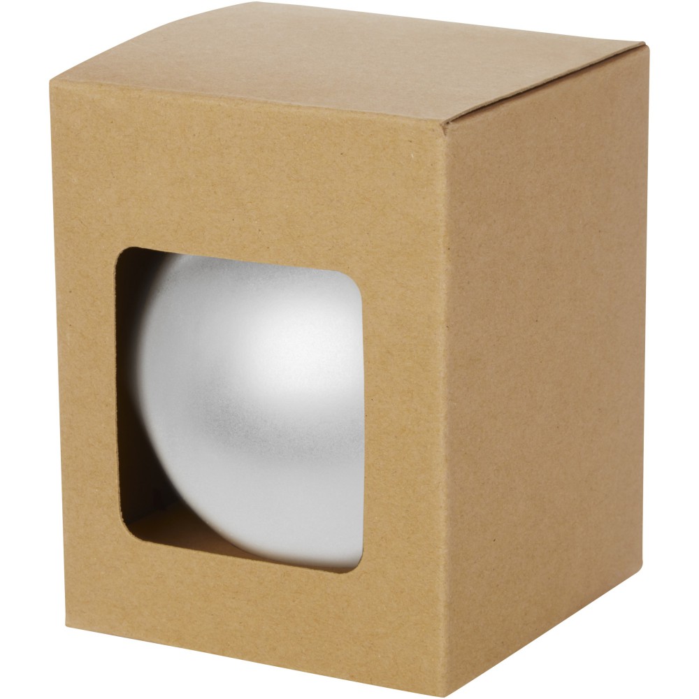 Karácsonyfadísz fényes bevonattal. Csomagolása egyenként ablakos kraft dobozban.