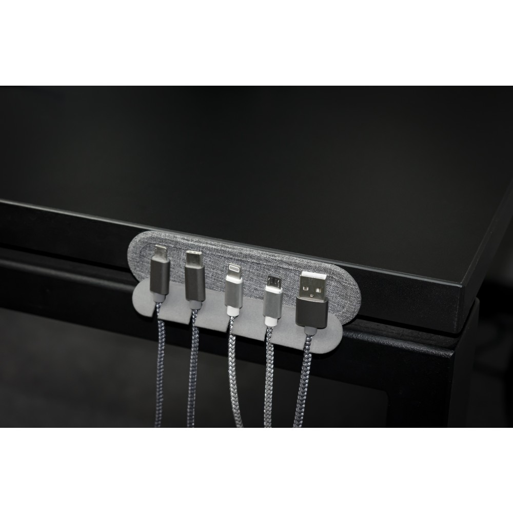 Ha gondot okoznak az íróasztal, tévé, számítógép vagy telefon körül zsúfolódó vezetékek, a Cabledock egyszerű megoldást kínál. Az 5, legfeljebb 6 mm-es kábelnyílással kompatibilis az összes töltő- és perifériakábellel. Összecsukható és öntapadó hátú a könnyű elhelyezés érdekében.