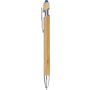 Bambusz golyóstoll krómozott fém részletekkel. Krómozott műanyag tollheggyel és fém klipsszel. Színes érintő a nyomógombon. Kb. 800 méter íráshossz. Kék tollbetéttel.