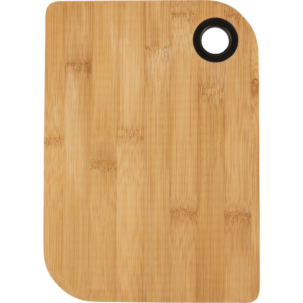 Bambusz vágódeszka szilikongyűrűvel ellátott fogóval. Bambusz, szilikon.