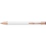 Alumínium golyóstoll matt felülettel, rózsaarany részletekkel, kék tollbetéttel.