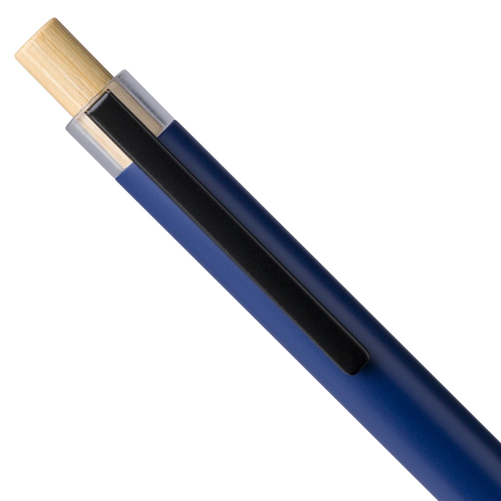 Újrahasznosított alumíniumból készült, lakkozott tollszett golyóstollal és rollerball tollal. A golyóstoll bambusz nyomógombbal, rPET díszítéssel és fém klippel rendelkezik, míg a rollerball toll bambusz/rPET kupakdíszítéssel és hozzá illeszkedő klippel. A tolltesten gravírozott recycled (újrahasznosított) alapanyagra utaló logó található mindkét toll esetében. A golyóstoll kb. 700 méter, a roller toll kb. 500 méter íráskapacitású, mindkettő kék színű tollbetéttel. Színes, újrahasznosított kartonból készült ajándékdobozba csomagolva.