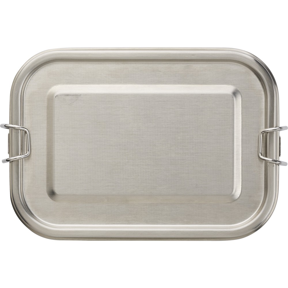 Rozsdamentes acél (s/s304) uzsonnásdoboz (750 ml) csatos zárással. Egyenként barna kartondobozba csomagolva.