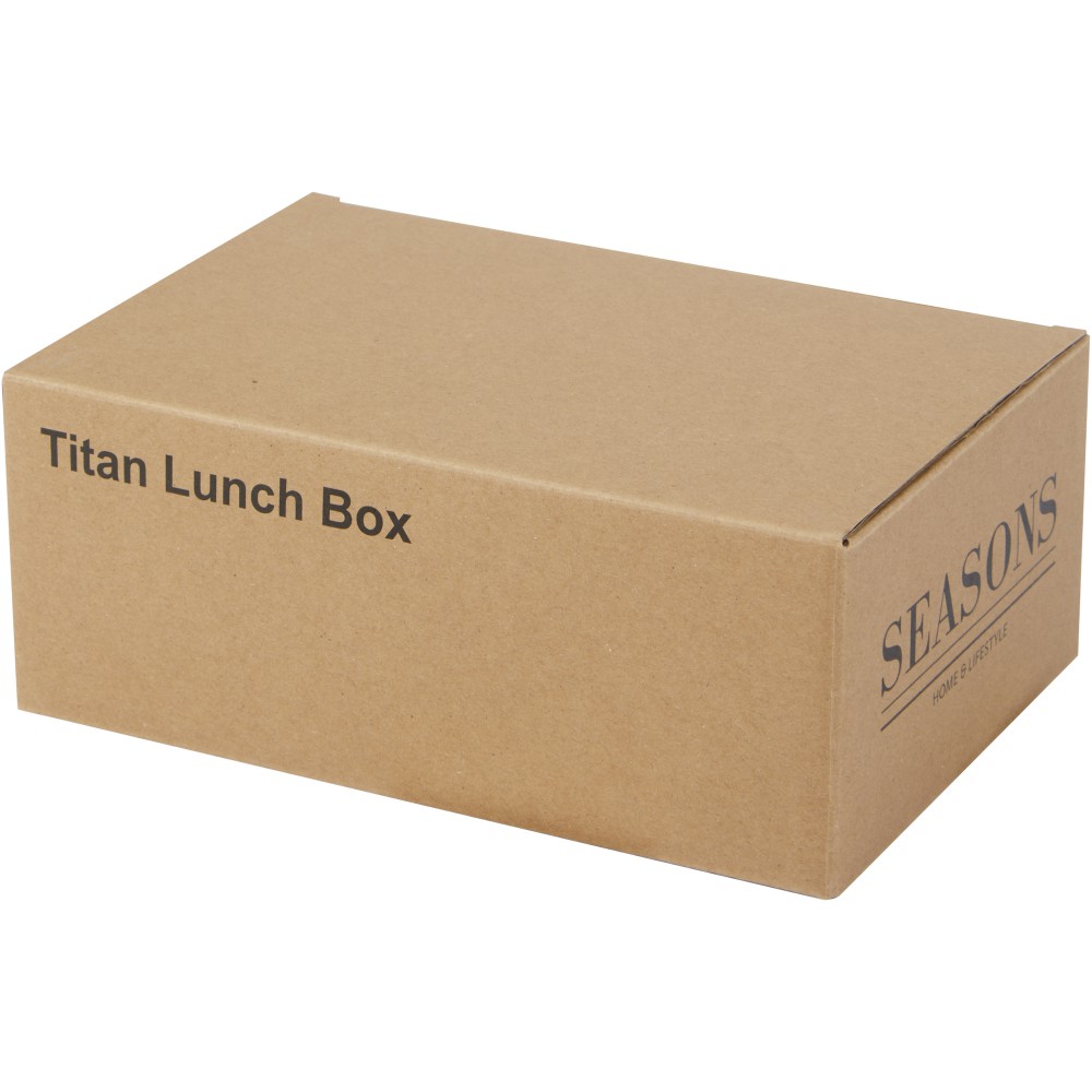 A Titan uzsonnásdoboz újrahasznosított rozsdamentes acélból készült, így a hagyományos uzsonnásdobozokhoz képest fenntarthatóbb választás. Újrahasznosított zacskóba csomagolva, majd újrahasznosított kraftpapír dobozba helyezve. Mosogatógépben mosható. Űrtartalom: 750 ml.
