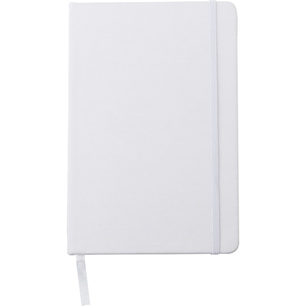 A5-ös, RPET szövet borítású füzet gumipánttal, könyvjelzővel. 80 vonalas oldalt tartalmaz 70 g-os papírból. RPET és PU.