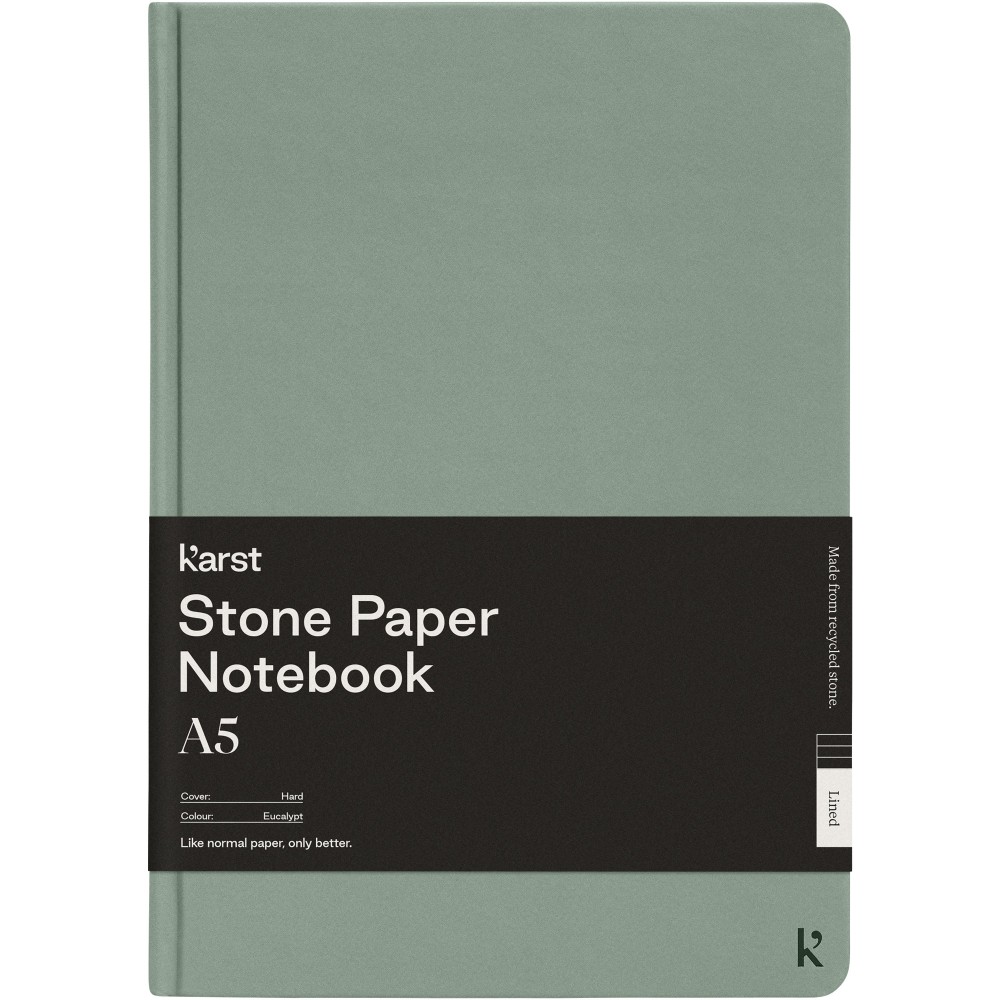 Karst A5 keményfedeles füzet. Az oldalak sima textúrája és a lapos kötészet bőséges kényelmet és íróteret biztosít jegyzetei számára. Elasztikus pánt, 144 vízálló, szakadásálló vonalas lap, kibővíthető hátsó zseb a tároláshoz, valamint könyvjelző és lekerekített sarkok.