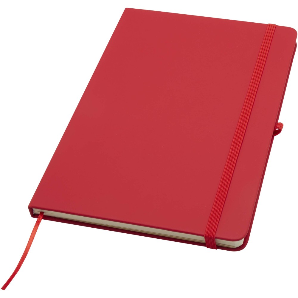 A Spectrum Plus A5 keményfedeles jegyzetfüzet lekerekített sarkokkal nemcsak az irodai mindennapok elengedhetetlen kelléke, hanem remek lehetőség márkád népszerűsítésére is. A jegyzetfüzet puha tapintású borítóval rendelkezik és 80 vonalas, krémszínű, 70 g/m2-es lapból áll, amely tökéletes gyors ötletek vagy hosszabb jegyzetek rögzítésére. A jegyzetfüzet tolltartó hurokkal, gumiszalagos záródással, könyvjelzővel és harmonikazsebbel van ellátva.