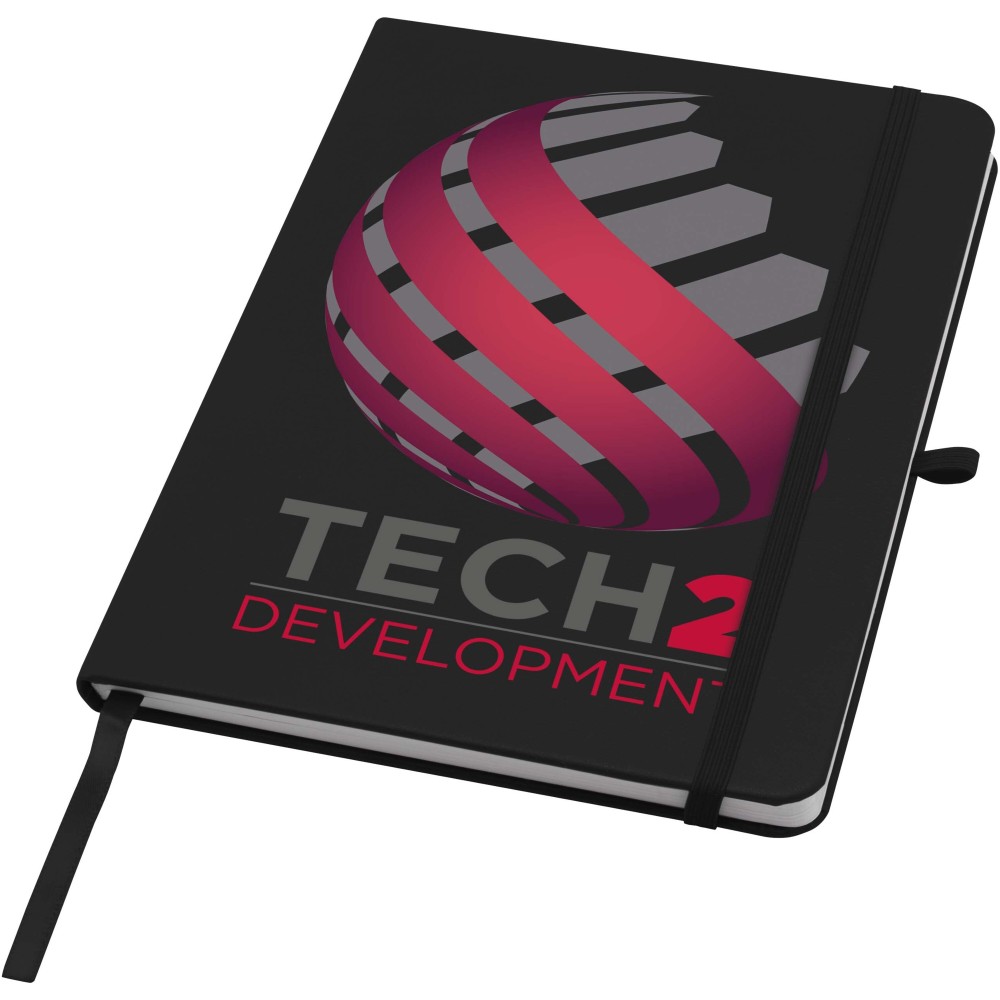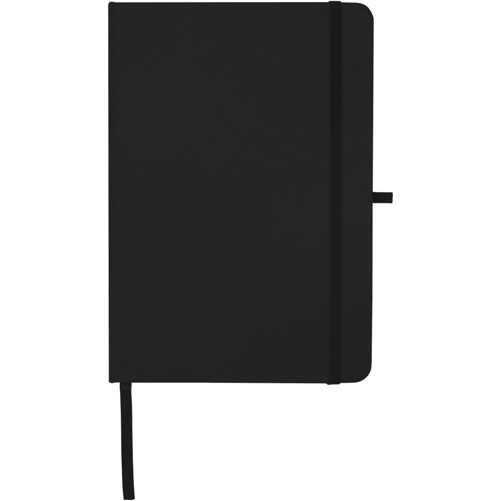 A Teak A5 méretű, újrahasznosított karton keménytáblás jegyzetfüzet lekerekített sarkokkal nemcsak irodai alapdarab, hanem kiváló lehetőség a márka népszerűsítésére is. A jegyzetfüzet 96 darab 70 g/m2-es vonalas lapot tartalmaz és puha tapintású borítóval rendelkezik. Beépített tolltartó hurokkal, rugalmas zárópánttal és könyvjelzővel van ellátva.
