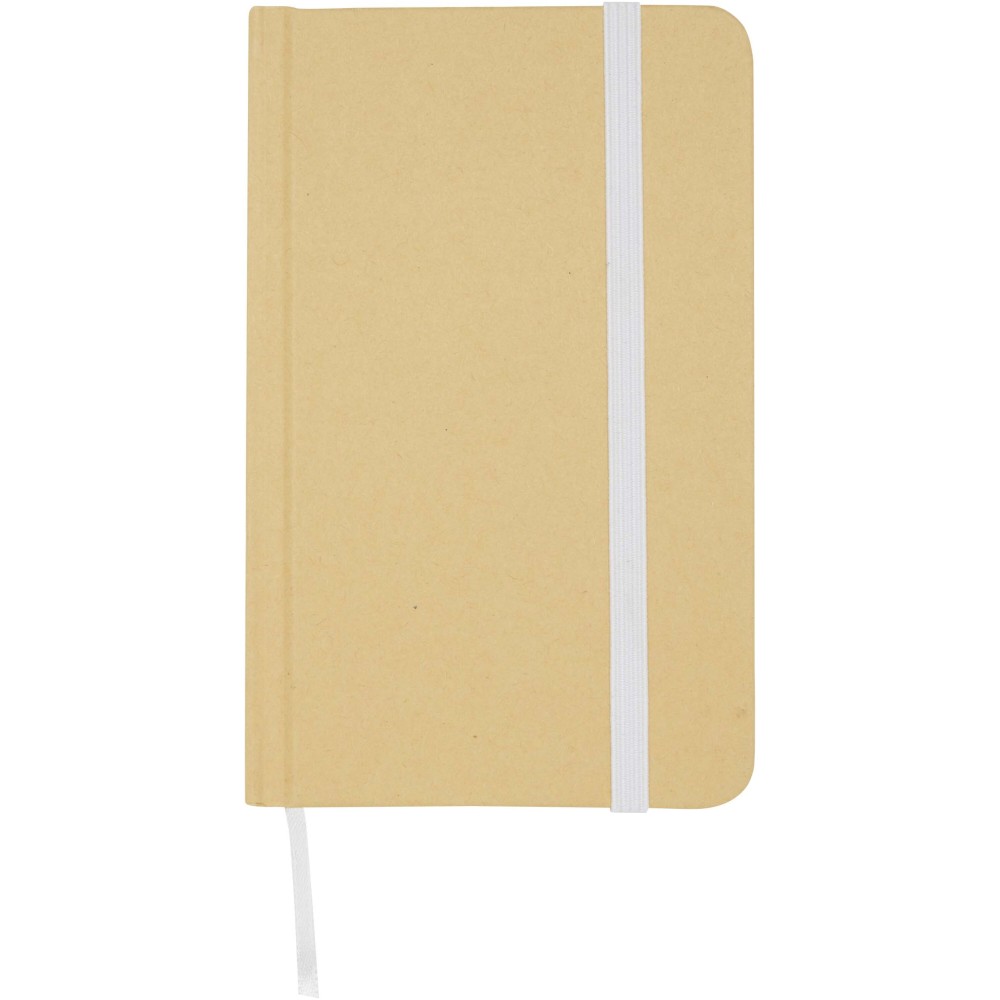 A Reed A6 méretű, újrahasznosított karton keménytáblás jegyzetfüzet lekerekített sarkokkal nemcsak irodai alapdarab, hanem kiváló lehetőség a márka népszerűsítésére is. A jegyzetfüzet 96 darab 70 g/m2-es üres lapot tartalmaz, és puha tapintású borítóval rendelkezik. Rugalmas zárópánttal és szalagkönyvjelzővel van ellátva.