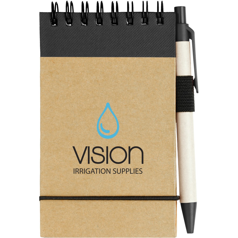 Ez az újrahasznosított jegyzetblokk 40 db A7-es méretű vonalas lapot tartalmaz újrahasznosított papírból, és egy hozzáillő színű tollat. A tollak külön csomagolva.