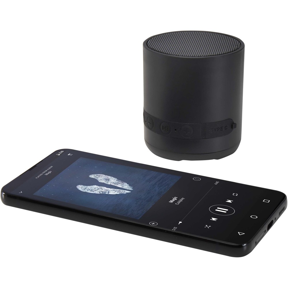 A Hunor 3W vezeték nélküli Bluetooth® hangszóró újrahasznosított műanyagból készült, és Type-C töltőporttal, hangerőszabályzóval, Lejátszás/Szünet/Hívás gombbal, valamint beépített mikrofonnal rendelkezik. A TWS (True Wireless Stereo) funkciónak köszönhetően két hangszóró párosítható a valódi sztereó hangzás élményéért.
