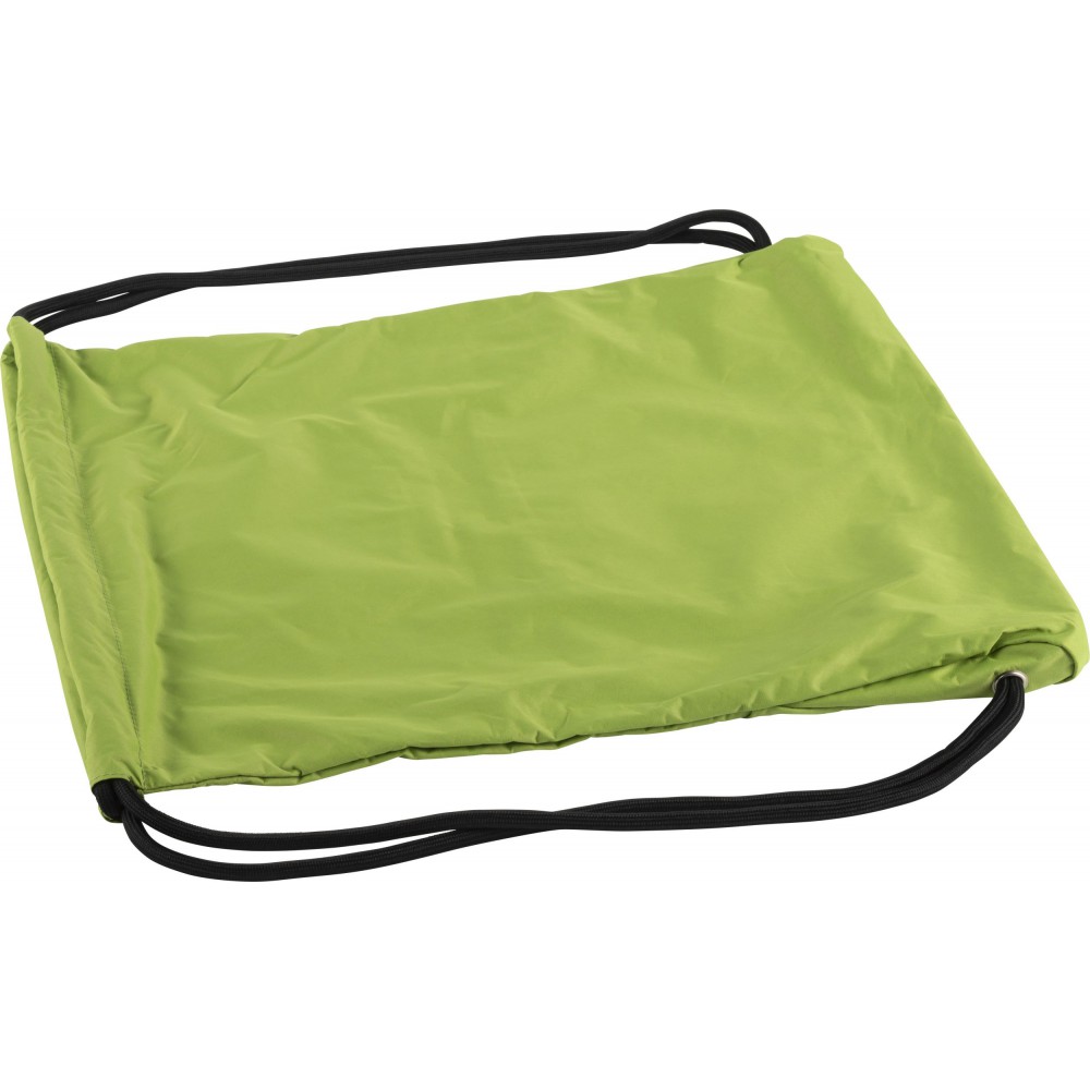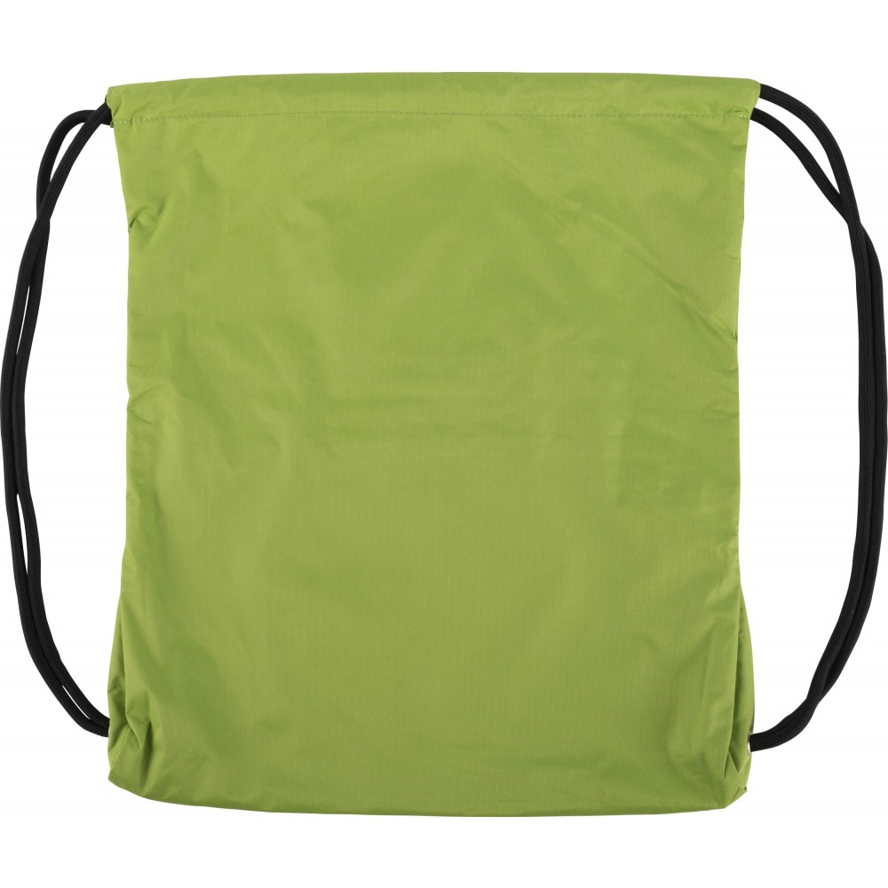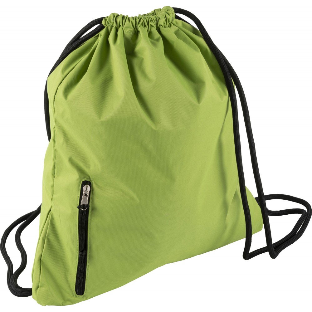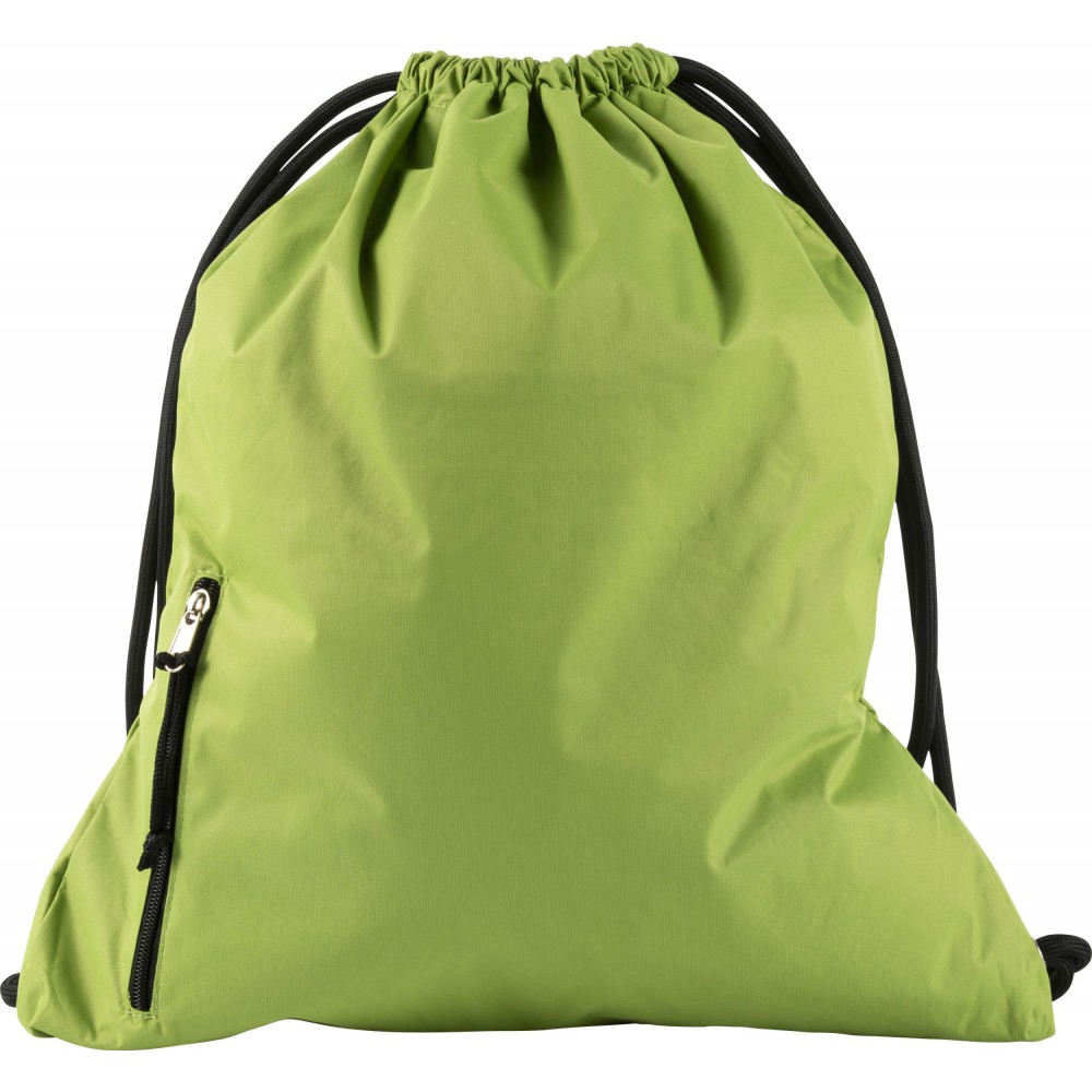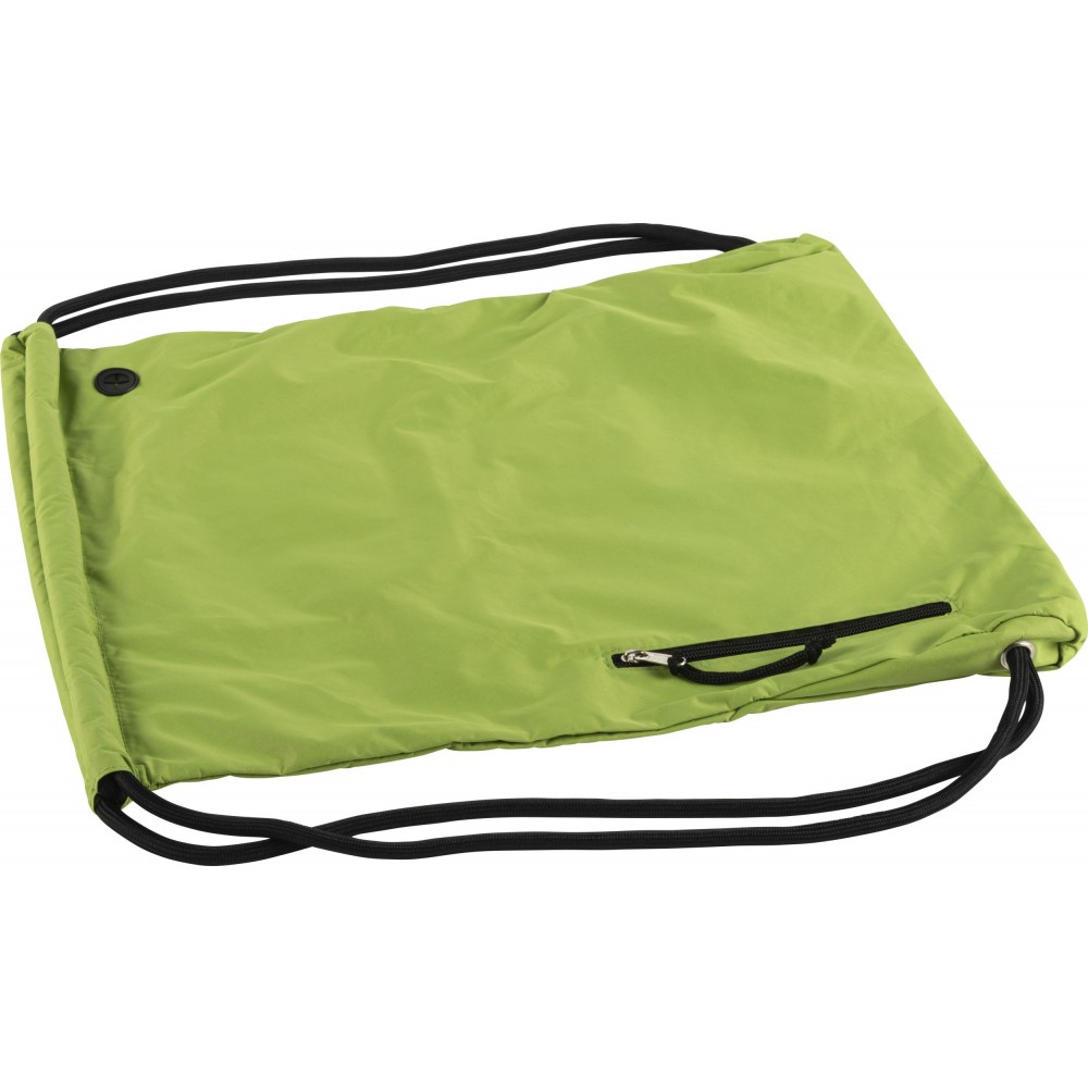 Tornazsák húzózsinórral, elöl cipzáras zsebbel. 190T nylon.