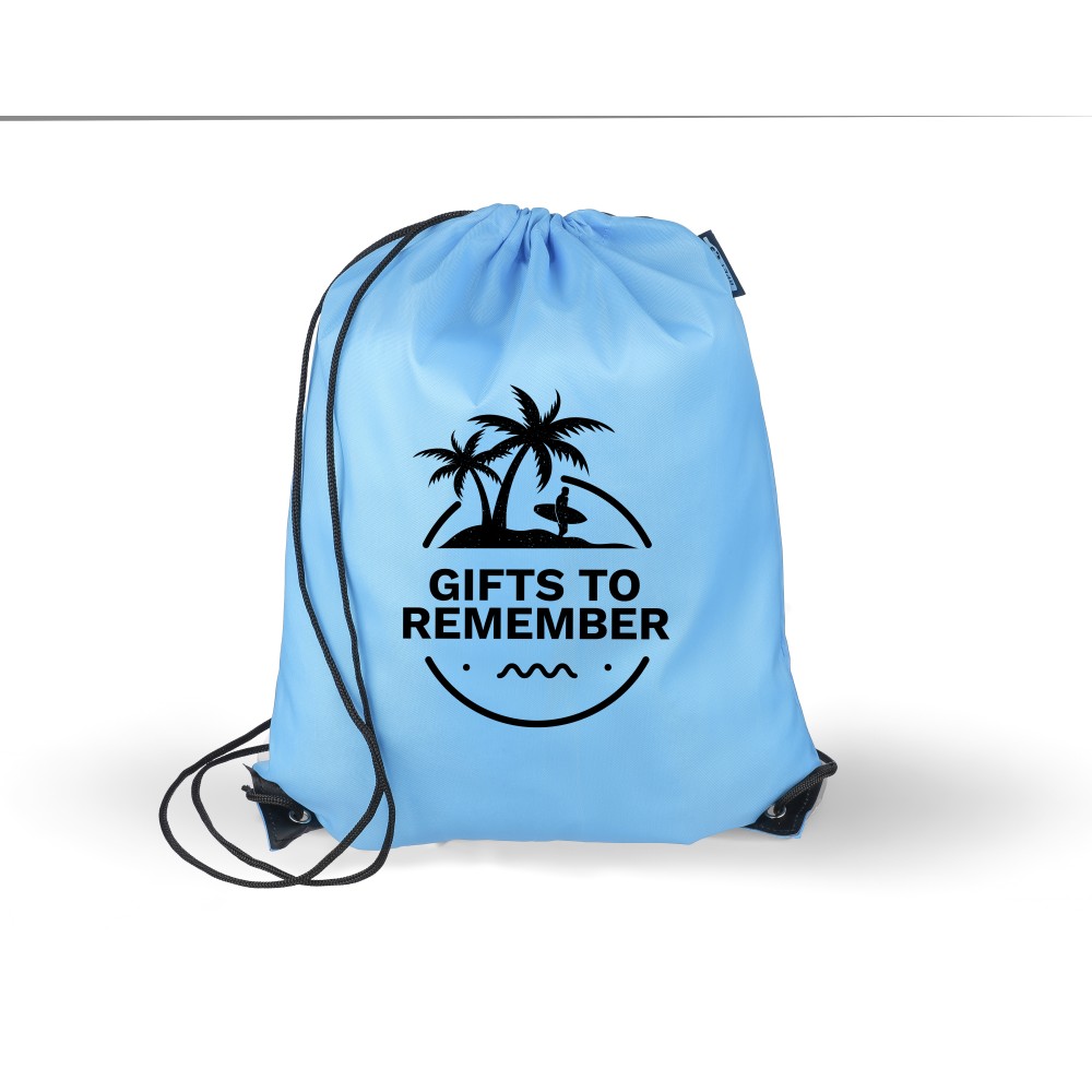 Tornazsák 210D poliészter anyagból, fekete PU sarokerősítéssel az elején, és belső varrással. Fekete nylon húzózsinórral, egy rekesszel. Űrtartalom: 5 liter, teherbíró képesség: 7 kg. rPET címkét tartalmaz.