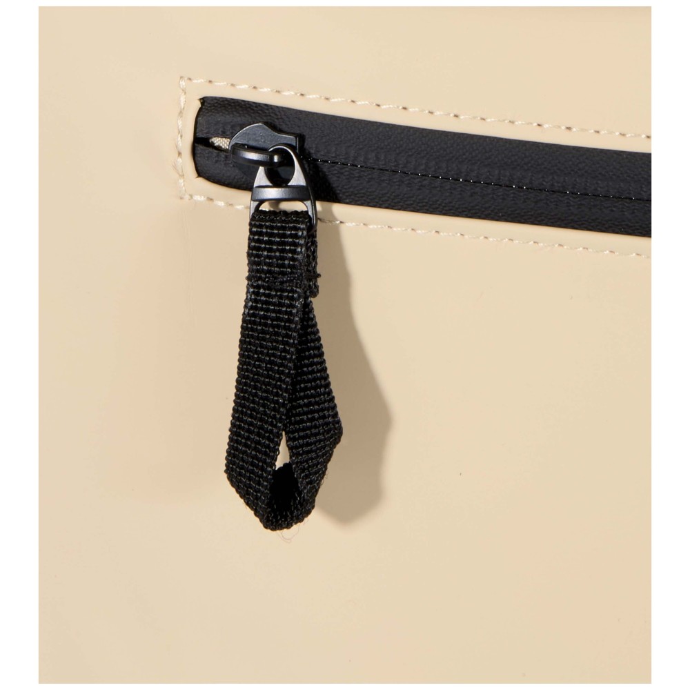 Prémium, újrahasznosított PU bőrből készült, színben harmonizáló RPET béléssel, ez a rolltop hátizsák modern megjelenést és hosszú élettartamot kínál. Vízlepergető felülete megóvja a tartalmát esőtől és nedvességtől, míg a feltekerhető zárórész rugalmas pakolást tesz lehetővé - ideális laptop hátizsákként ingázáshoz, utazáshoz vagy edzőterembe. Belsejében párnázott rekesz található, amely akár 15,6" laptopot is biztonságosan tárol, valamint egy cipzáras zseb a technikai eszközök és mindennapi kellékek rendszerezésére. A külső részen vízálló cipzárral ellátott elülső zseb biztosít gyors és biztonságos hozzáférést, míg a párnázott, állítható vállpántok és a légáteresztő hátpanel egész napos kényelmet nyújtanak.