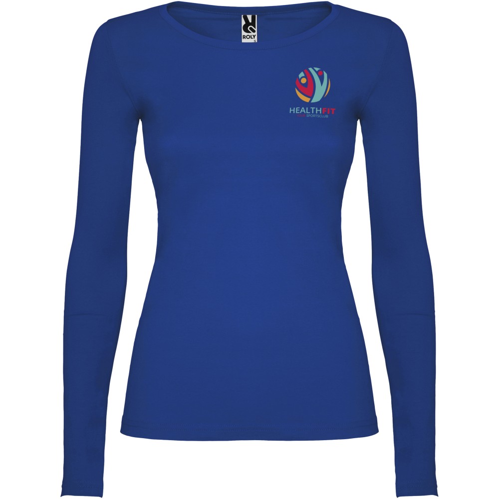 Hosszúujjú, oldalvarott, enyhén karcsúsított női póló 4 rétegű, kerek, keskeny nyakkal. Nincs ujj- és aljpasszé. Megerősített nyaki varrások. A férfi modell körkötött, a gyermek és női modell oldalvarrott. Szürke szín: 85% pamut és 15% viszkóz, 160 g/m2. Egyéb színek: 100% pamut, 160 g/m2.