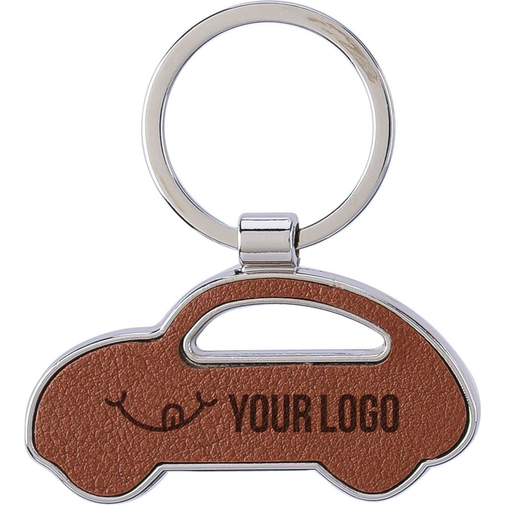 Kulcstartó autó alakú, újrahasznosított bőrből, fém karikával. Oldalán dombornyomott újrahasznosított bőr anyagra utaló logóval. Egyenként barna kartonhüvelybe csomagolva. Anyaga: újrahasznosított bőr.
