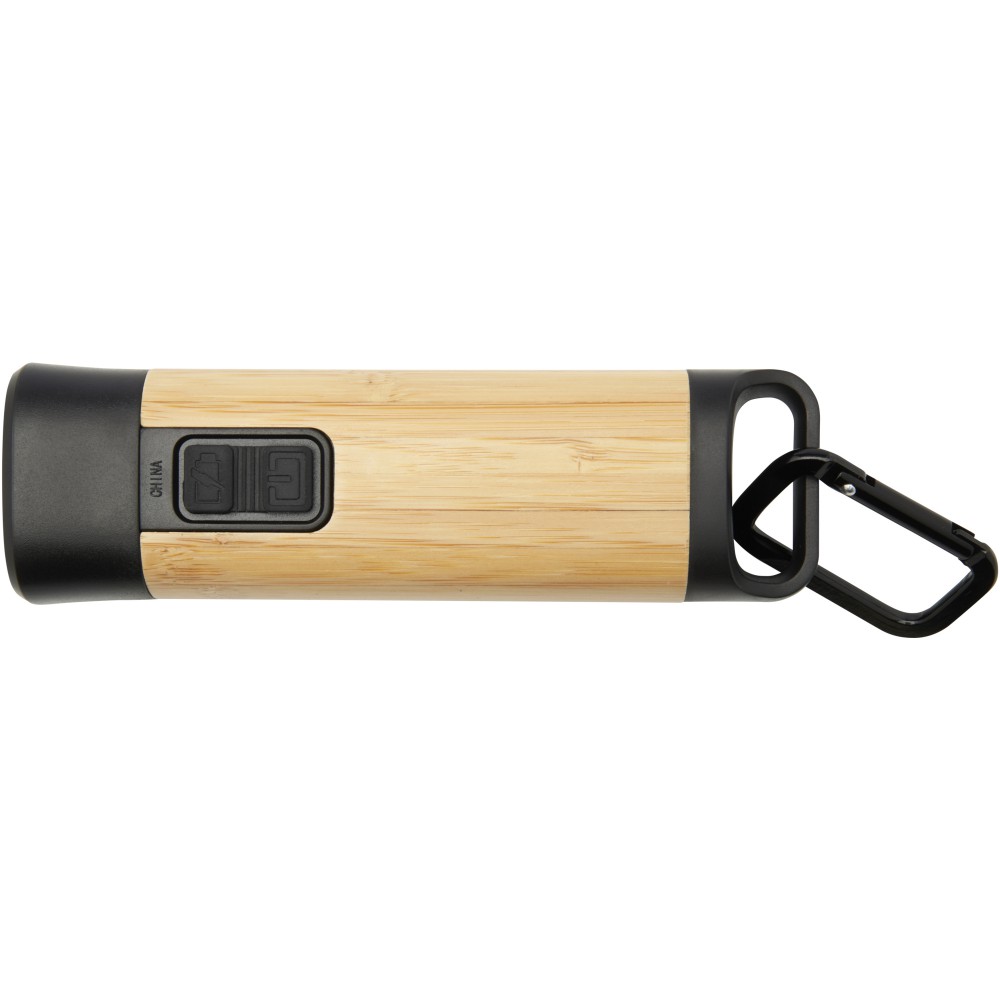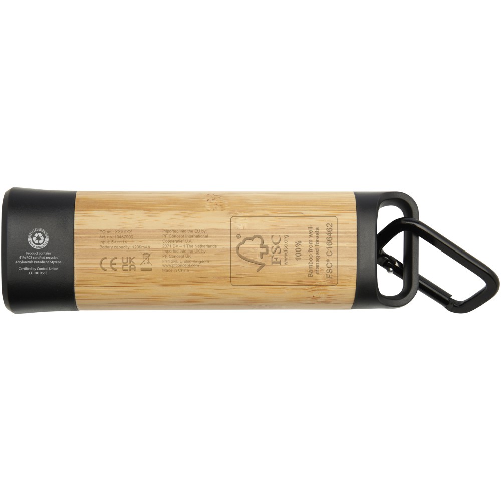 A karabinerrel ellátott Kuma zseblámpa bambuszból és 41% RCS-tanúsítvánnyal rendelkező újrahasznosított műanyagból készült, így fenntarthatóbb választás a szabadban való felfedezéshez, barkács projektekhez vagy áramszünet esetén. Erőteljes 3W-os COB fényforrással, amely 3 különböző világítási módban áll rendelkezésre, a Kuma 80 lumen fényt bocsát ki és a sugárzási távolsága akár 100 méter is lehet teljesen feltöltött állapotban. A nagy kapacitású, 1200 mAh-s Li-ion 18650 akkumulátorral szerelt zseblámpa hosszú élettartamot és megbízhatóságot biztosít. Egyetlen töltéssel 3,5-4,5 óra folyamatos megvilágítást biztosít. A mellékelt alumínium karabiner könnyű rögzítést tesz lehetővé a hátizsákokhoz, övekhez vagy felszerelésekhez, így megbízható társ kempingezéshez vagy túrázáshoz. Mivel a bambusz természetes termék, darabonként előfordulhatnak kis szín- és méretbeli eltérések, ami befolyásolhatja a végső nyomtatási eredményt. 30 cm-es TPE Type-C töltőkábellel szállítjuk, fenntartható forrás