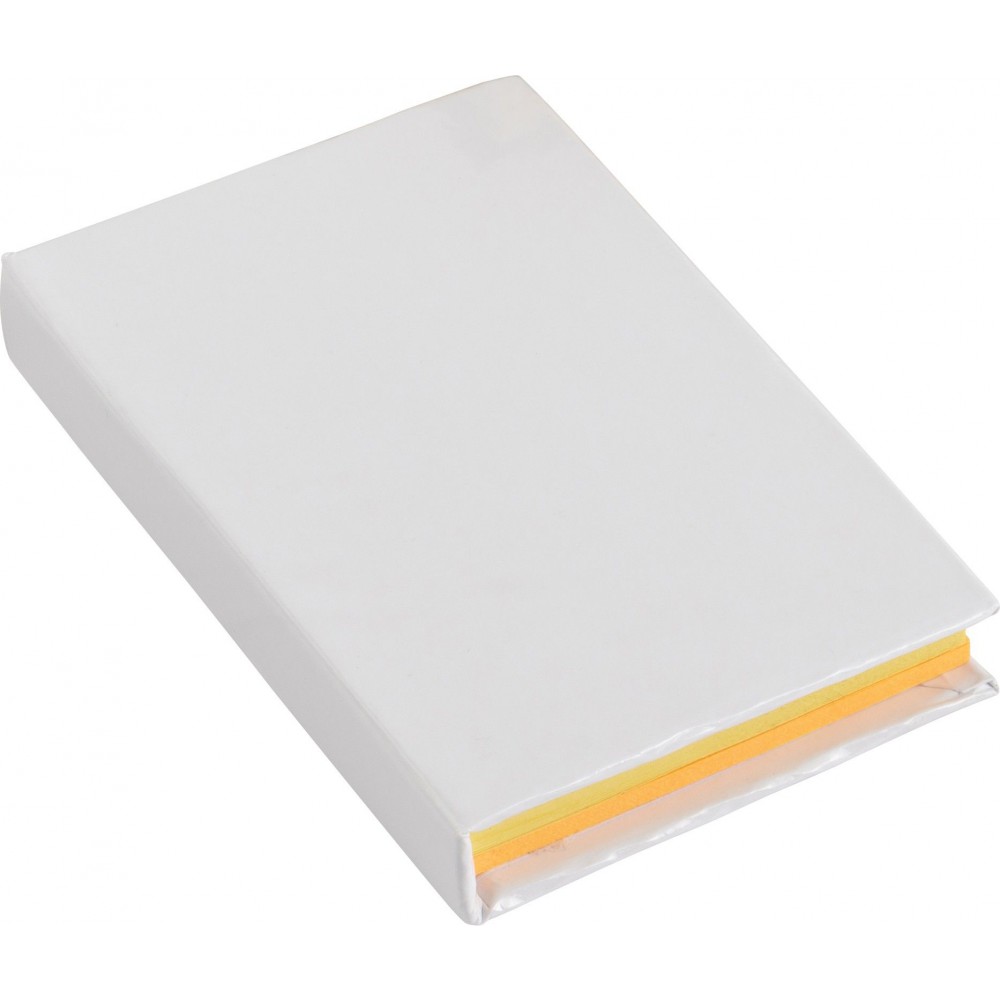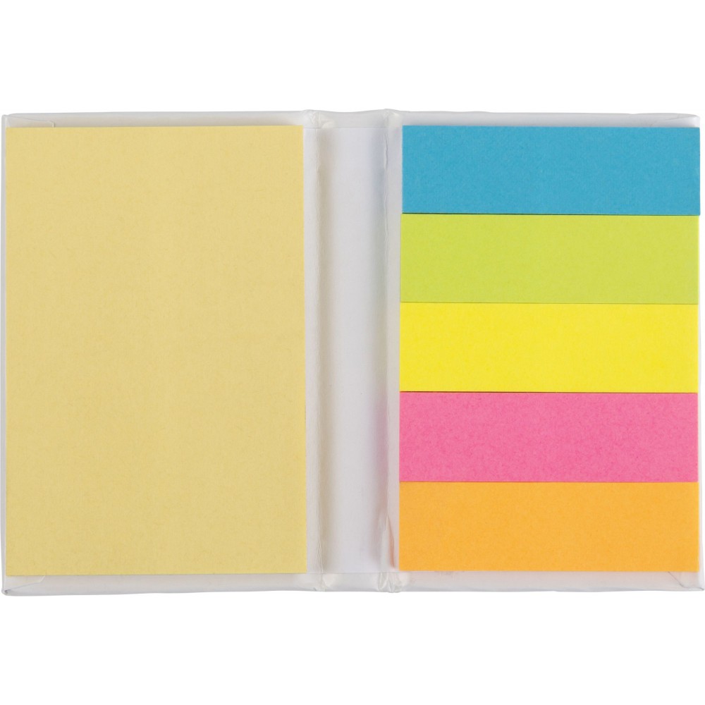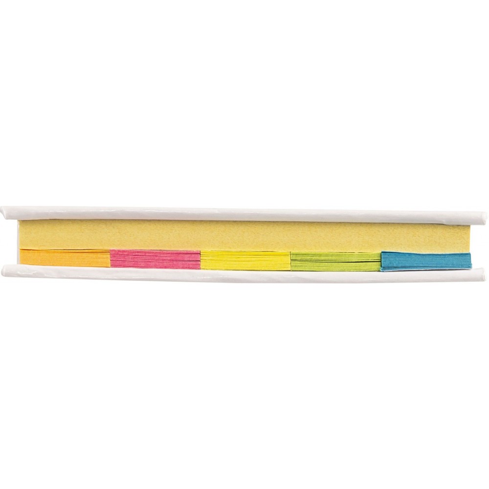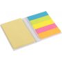 Öntapadó jegyzetlapkészlet keményfedelű tartóban. 50 db nagy öntapadós jegyzettömb lap és 5 különböző színű kis öntapadós jelölő, színenként 25 lap. 70g/m2.