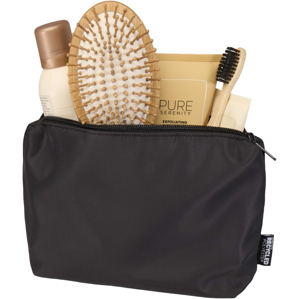 A Trip Aware® újrahasznosított utazó piperetáska kompakt és egyszerű megoldás a mindennapi alapvető holmik szállítására. Tartós 290D twill poliészterből készült, kötött hátoldallal és RPET 210D/PU béléssel, letisztult, minimalista kialakítással. Fő rekesze elegendő helyet biztosít piperecikkeknek vagy kisebb tárgyaknak, így ideális rövid utakhoz vagy útközbeni rendszerezéshez. Minden táska Aware® nyomkövetővel érkezik, amely QR-kód segítségével lehetővé teszi a termék eredetének és útjának nyomonkövetését, növelve az ellátási lánc átláthatóságát és a kapcsolatot a termék gyártási folyamatával. Űrtartalom: 2 liter.