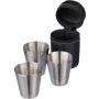 Rozsdamentes acél felespoharak. 4 darabos készlet (30 ml) PU bőrből készült cipzáras tokban.