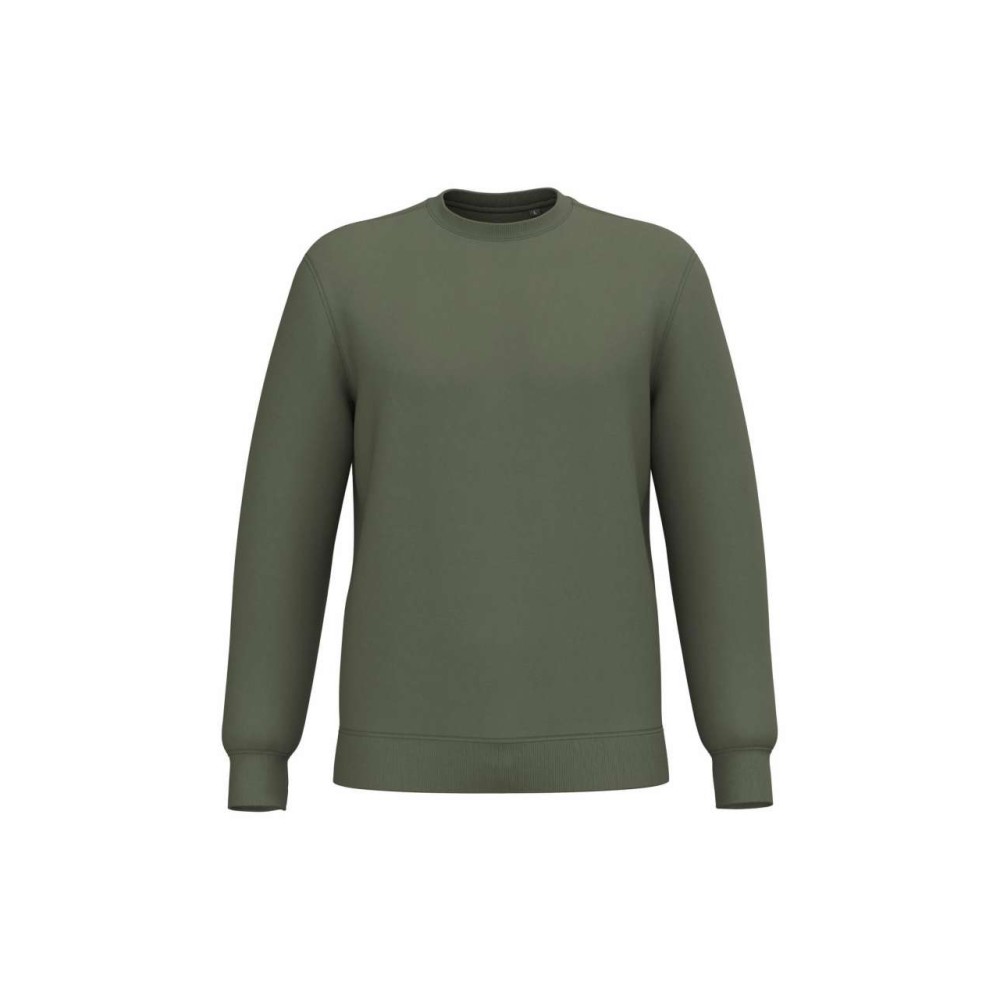 280 g/m2, 50% gyűrött pamut/50% újrahasznosított poliészter. Csiszolt polár anyag, egyenes szabás, környakas fazon. Vágott és varrott, 1x1 bordás, csőszerű összeállítás a nyakvonal, a mandzsetták és az alsó szegély jobb kiviteléért. Tónusban megegyező jersey szalag a nyakvonal belsejében. Nincs márkajelzés a nyakvonalon, csak méretcímke a könnyű dekorálás érdekében.