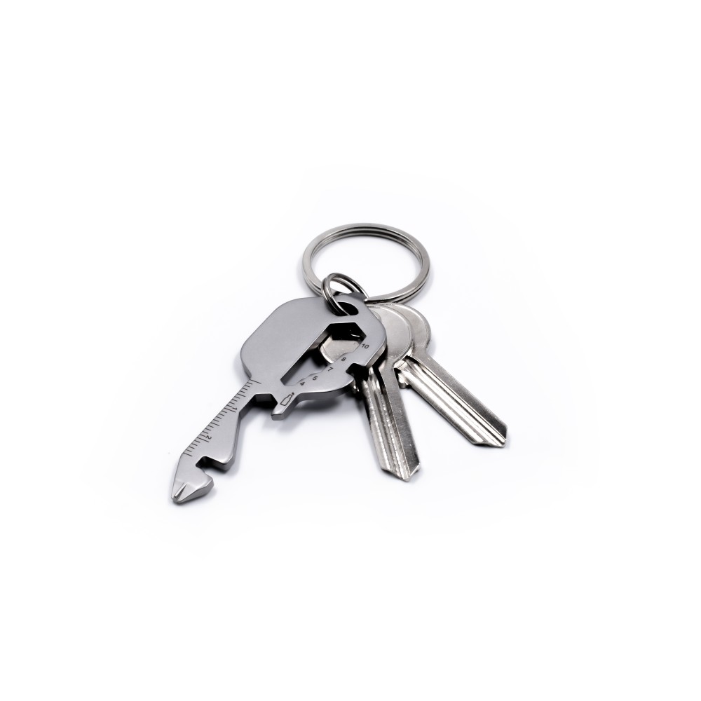 A strapabíró 2CR13 martenzites rozsdamentes acélból készült Kee Shape multifunkciós szerszám a biciklisek kedvence lesz. 12 alapvető szerszámot egyesít egy kompakt, kulcs alakú kialakításban, így bármilyen kulcstartóhoz könnyen rögzíthető. Tartalmaz egy bicikli küllős kulcsot, villáskulcsokat (4-10 mm-es méretek), sörnyitót, Phillips és lapos csavarhúzókat, huzalhajlítót, valamint centiméteres és hüvelykes mérőt. Elegáns fekete dobozba csomagolva kényelmes, minden egyben eszköz a mindennapi szükségletekhez.