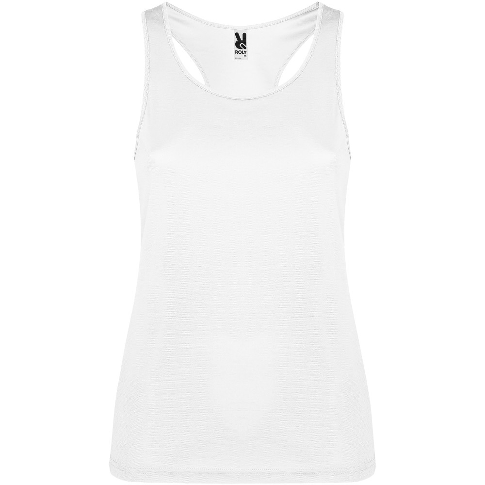 Technikai, légáteresztő, könnyen mosható és gyorsan száradó anyag. Bordázott karkivágások és nyakrész. Racerback kialakítás és oldalvarrások. Eltávolítható címke. 100% Polyester, 140 g/m2.