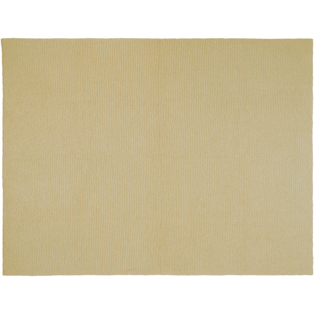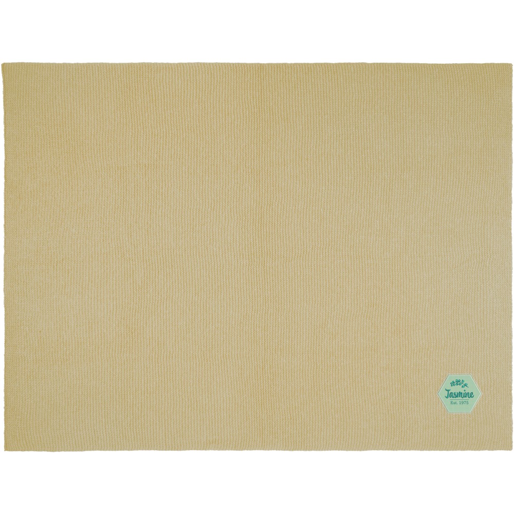 A Suzy kötött takaró sokoldalú kiegészítője minden otthoni vagy irodai helyiségnek. Ez a takaró 100% GRS poliészter kötött anyagból készült, amely biztosítja a tartósságot és a fenntarthatóságot. 150 x 120 cm-es méretével a méret és a kényelem tökéletes egyensúlyát kínálja. A szalaggal kötött dizájn egy csipetnyi kifinomultságot kölcsönöz, hívogató a logó elhelyezése számára.