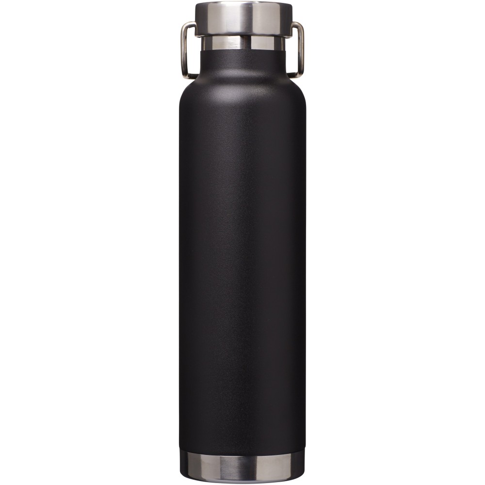 Thor duplafalú vákumos palack. Belső fala réz, ennek köszönhetően 48 órás hideg- és 12 órás melegtartási képességgel rendelkezik. Ez a kialakítás megakadályozza a kondenzációt a palack külső falán. A termoszhoz csavaros, rozsdamentes acél kupak tartozik. Széles kiöntő nyílással rendelkezik, amely akár jégkockák behelyezésére is alkalmas. Szivárgásmentes. Szénsavas italokkal nem használható. Mosogatógépben nem mosható és mikrohullámú sütőben történő melegítésre nem alkalmas. Űrtartalom: 650 ml. Csomagolása Avenue díszdoboz. Rozsdamentes acél.