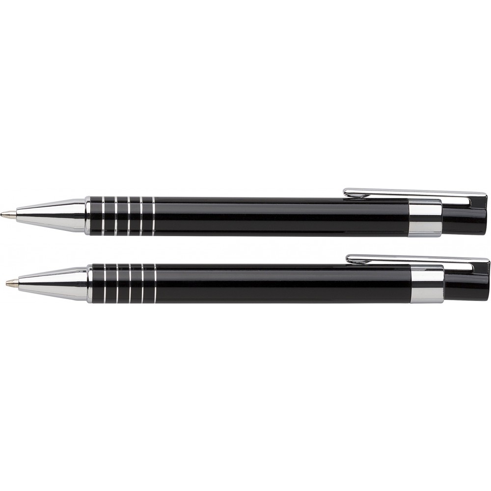 Lakkozott felületű golyóstoll fekete tollbetéttel és töltőceruza, színben hozzáillő dobozban.