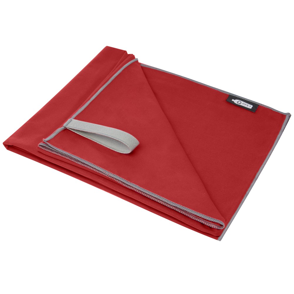 Ez a sporttörölköző nagyon jó nedvszívó, könnyű és gyorsan szárad. Ha a törölközőt összehajtjuk és gumiszalaggal rögzítjük, kis mérete miatt alkalmas edzőterembe, uszodába, vagy kempingezésre. A törölköző 130 x 80 cm méretű, 200 gr/m2-es újrahasznosított PET poliamidból készült, mosógépben 40°C-on mosható. Újrahasznosított PET műanyagból készült tároló tasakkal (20 x 8,5 cm) szállítjuk, amely remek helyet biztosít a logó nyomtatásához.