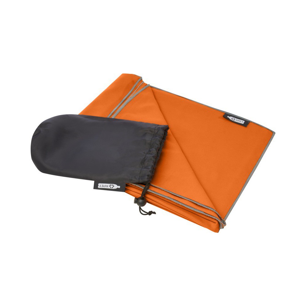 Ez a sporttörölköző nagyon jó nedvszívó, könnyű és gyorsan szárad. Ha a törölközőt összehajtjuk és gumiszalaggal rögzítjük, kis mérete miatt alkalmas edzőterembe, uszodába, vagy kempingezésre. A törölköző 130 x 80 cm méretű, 200 gr/m2-es újrahasznosított PET poliamidból készült, mosógépben 40°C-on mosható. Újrahasznosított PET műanyagból készült tároló tasakkal (20 x 8,5 cm) szállítjuk, amely remek helyet biztosít a logó nyomtatásához.