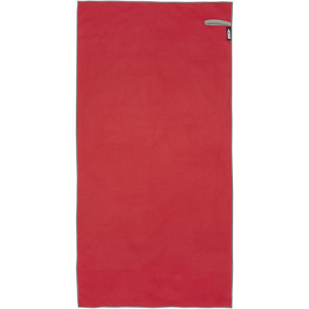 A Pieter sporttörülköző nagyon jó nedvszívó, könnyű, gyorsan szárad, az anyaga pedig tartós és rendkívül puha. Ha a törölközőt összehajtjuk és gumiszalaggal rögzítjük, kis méretűre csomagolható, így alkalmas arra, hogy magunkkal vigyük az edzőterembe, uszodába, vagy ha hátizsákos túrára, esetleg kempingezésre megyünk. A törülköző 50 x 100 cm méretű, 90% GRS újrahasznosított poliészterből és 10% nejlonból készült, és 40 °C-on mosható mosógépben. Újrahasznosított PET műanyagból készült tároló tasakkal (17 x 13 cm) szállítjuk.