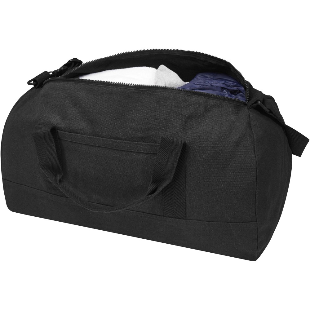 A Porter sporttáska 500 g/m2 újrahasznosított pamutból és poliészterből készült, tágas fő rekesszel a nagyobb tárgyak optimális tárolására, valamint egy kisebb elülső zsebbel, amely ideális például útlevél vagy mobiltelefon elhelyezésére. A táska kézben vihető a két rövid fogantyú segítségével, vagy a levehető és állítható vállpánttal, amely maximális kényelmet biztosít viselés közben. A sporttáska Cyclo újrahasznosított szálakat tartalmaz, amelyek előválogatott hulladékból készülnek - ennek megfelelően alakul a fonal természetes színe is. Ezek a szálak nemcsak a primer nyersanyagok iránti igényt csökkentik, hanem hozzájárulnak a körforgásos gazdaság megvalósításához, elősegítve a hulladék csökkentését és a zárt rendszerű gyártást. Minden táska Aware nyomkövetővel van ellátva, amely QR-kód segítségével lehetővé teszi a termék eredetének és útjának nyomon követését. Ez az innovatív megoldás növeli az ellátási lánc átláthatóságát, és erősebb kapcsolatot teremt a vásárló és a gyártási fol