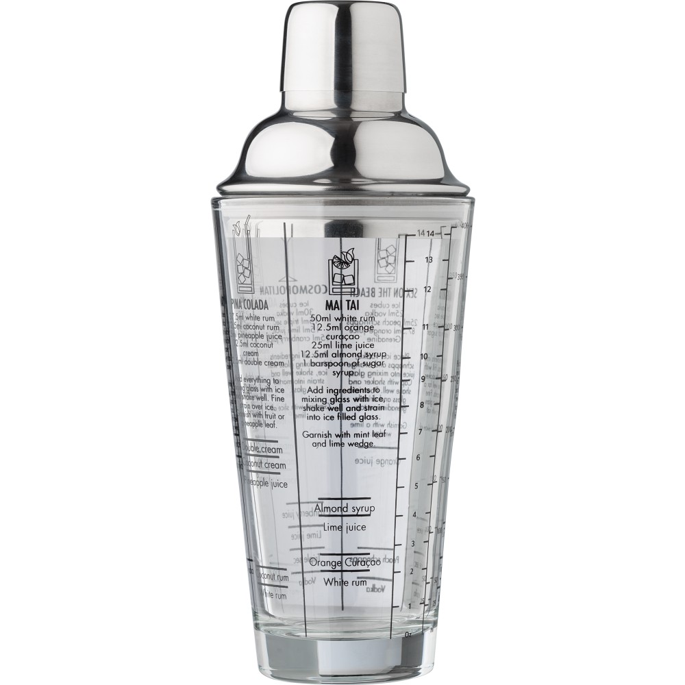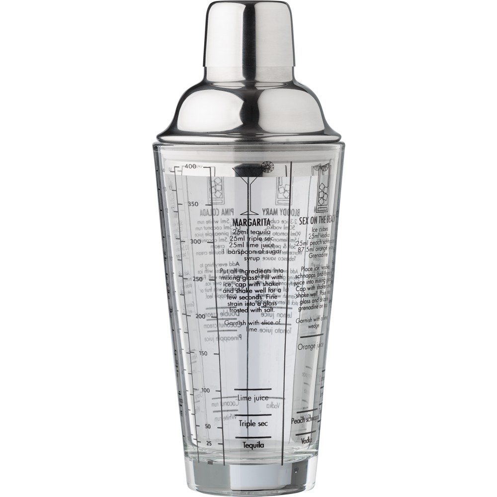 Üveg koktél shaker, 400 ml, átlátszó