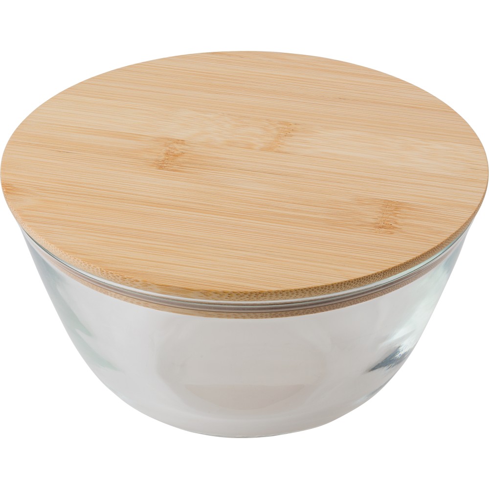 Üveg salátástál bambusz fedéllel